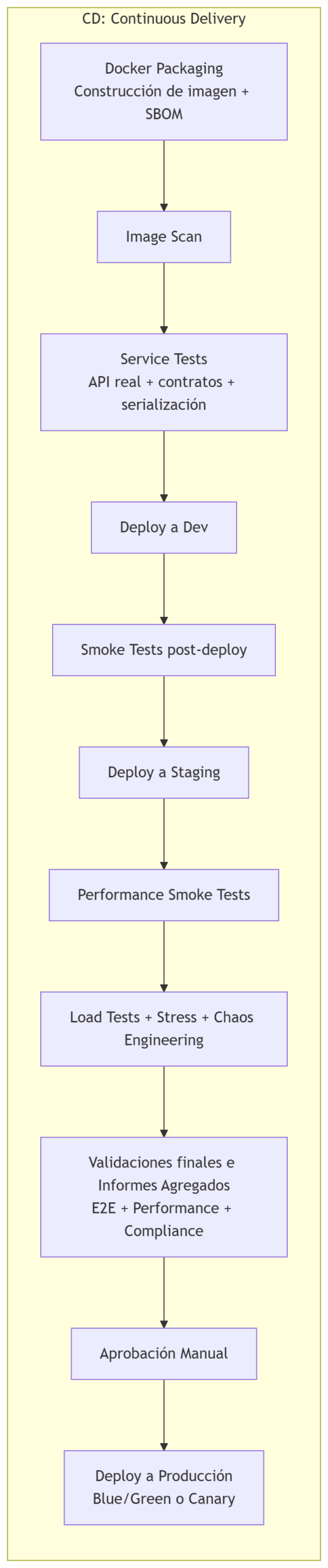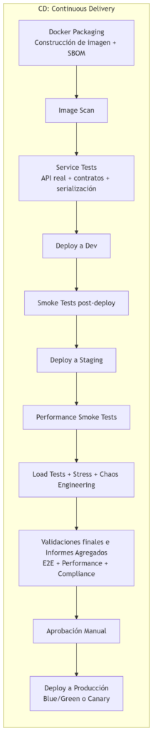 En el siguiente artículo, “CD — Parte 2: Image Scan y Service Tests”, veremos cómo se analiza la imagen construida en busca de vulnerabilidades y cómo se valida el servicio real mediante pruebas de contrato, endpoints y dependencias antes de cualquier despliegue.