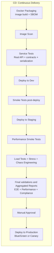 • Merge to main → CI on the target branch and then CD towards Production