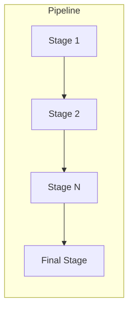 - Stage: a complete phase of the pipeline (i.e., a logical function).