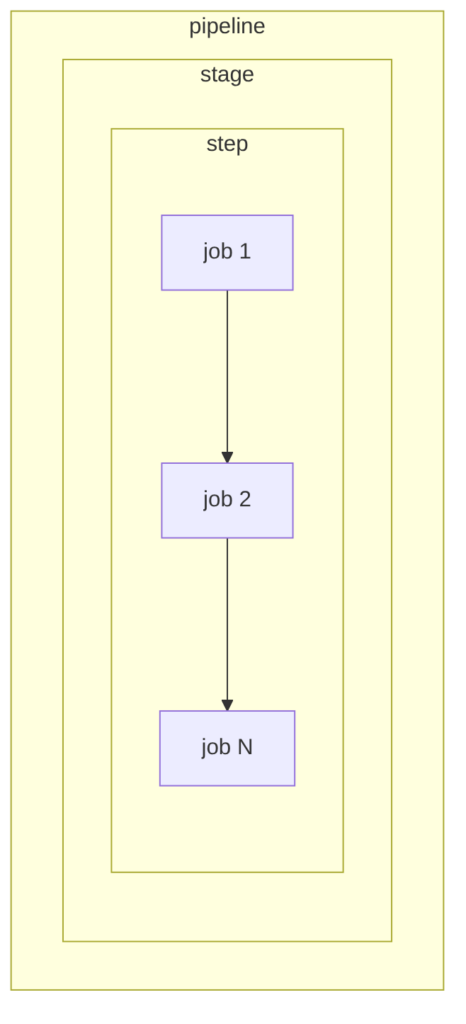 That is: a pipeline has stages → a stage has steps → a step has jobs.
